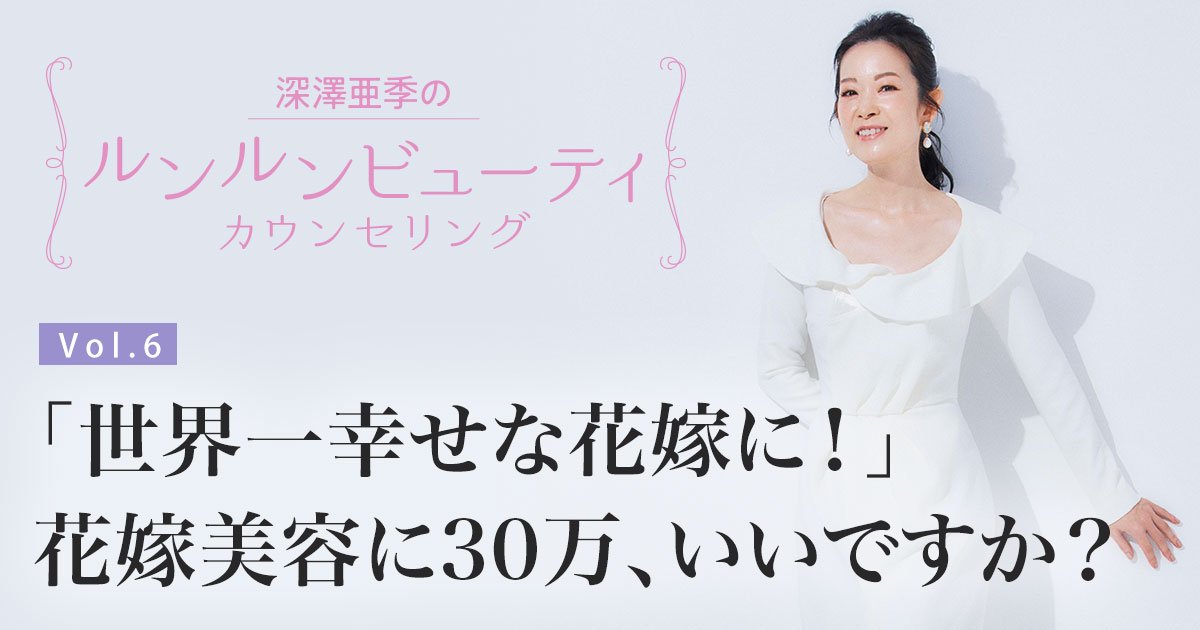 結婚式の美容医療、30万かけるべき?プレ花嫁のパニックを救う、費用と効果の“賢い線引き”術|美容家・深澤亜季のルンルン ビューティカウンセリング【vol.6】