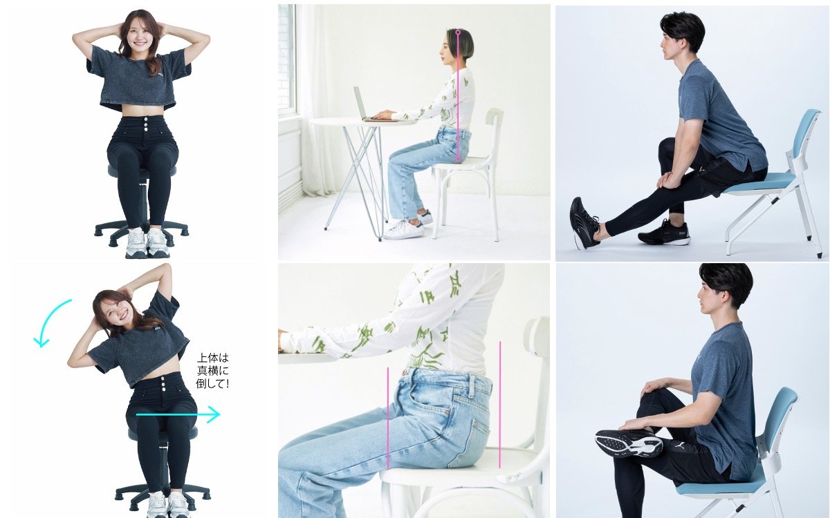 日ごろ座りっぱなしで運動不足になりがちのデスクワーク。血流も滞ったり体もこりかたまったりと困ったことばかり。まずは正しい姿勢から痩せやすくなる呼吸法、座りながらできちゃう!エクササイズ&ストレッチをお届けします。