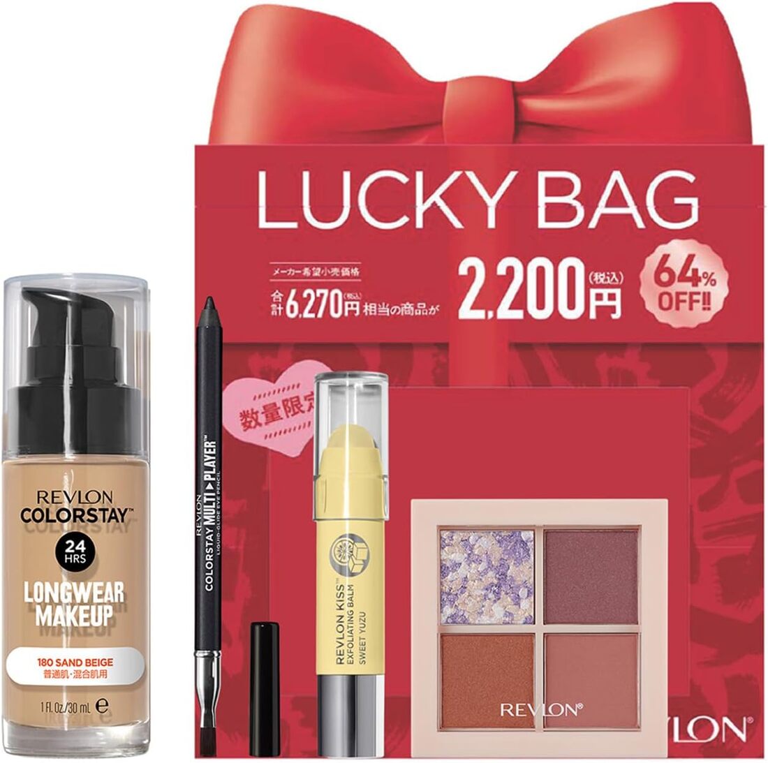 ・レブロン ラッキー バッグ 2025 4点セット LUCKY BAG コスメキット コフレ 福袋 ファンデーション アイシャドウ リップ リップスクラブ アイペンシル キスシュガー メイクアップ セット