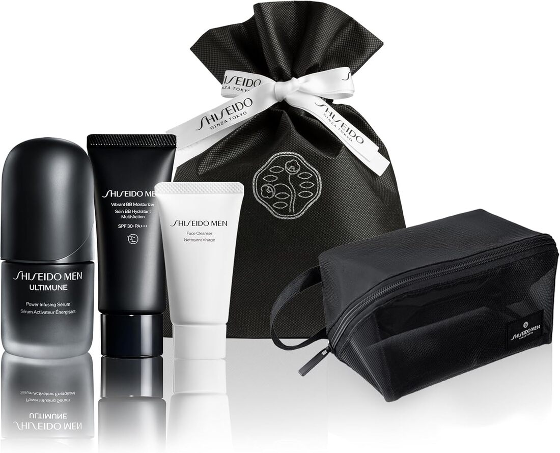 SHISEIDO MEN メンズ スキンケア・メイクギフトセット | 美容液 アルティミューン パワライジング セラム 30mL + BBクリーム ヴァイブラント BBモイスチャライザー40g + 洗顔 フェイスクレンザー 30g + オリジナルポーチ | ギフト包装付き