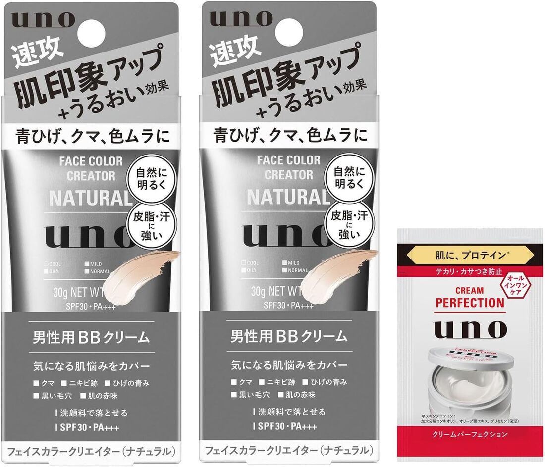 ウーノ【まとめ買い】 ウーノ フェイスカラークリエイター(ナチュラル) メンズBBクリーム SPF30 PA+++ 30g×2+おまけ メンズ メイク BBクリーム 青ひげ クマ 色ムラ 自然 カバー 汗 洗顔で落とせる 男性化粧品 ファンデーション 【Amazon.co.jp限定】