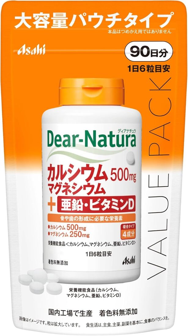 ディアナチュラ カルシウム・マグネシウム・亜鉛・ビタミンD 540粒(90日分) アサヒ サプリ Dear-Natura 国内工場で生産 パウチ