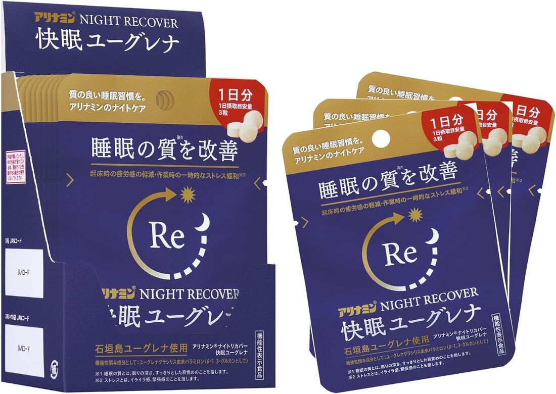 ナイトリカバー アリナミン 快眠ユーグレナ 3粒(1日分)x10 睡眠改善 眠活 【機能性表示食品】 睡眠の質を改善 快眠サポート 石垣島ユーグレナ タブレット 1包包装 10日分