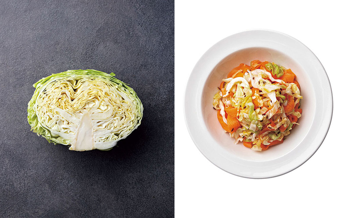 一年中手に入りやすく、90%以上が水分でカロリーが低いキャベツ。代表的な栄養素のひとつであるビタミンUは、別名キャベジンと呼ばれ、飲みすぎや食べすぎで疲れた胃の粘膜の修復をサポートしたり、肝臓の機能を助ける働きがあります。また、ビタミンCの含有量が淡色野菜の中ではトップクラスです。