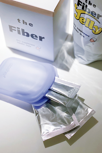 「食物繊維と乳酸菌入りで、腸内環境を整えてくれます。顆粒とゼリーの2タイプあるので、とる場所や気分でどちらかをセレクト」。