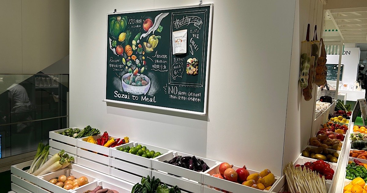 今回のポップアップストアは、「GREEN SPOON」が大切にしている「おいしい」「かんたん」「たのしい」」「ヘルシー」のこだわりを体現。まるで海外のファーマーズマーケットのような外装で心が躍ります♫