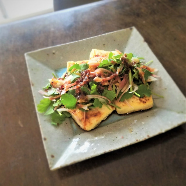 揚げ焼き豆腐と香味野菜のおつまみサラダ