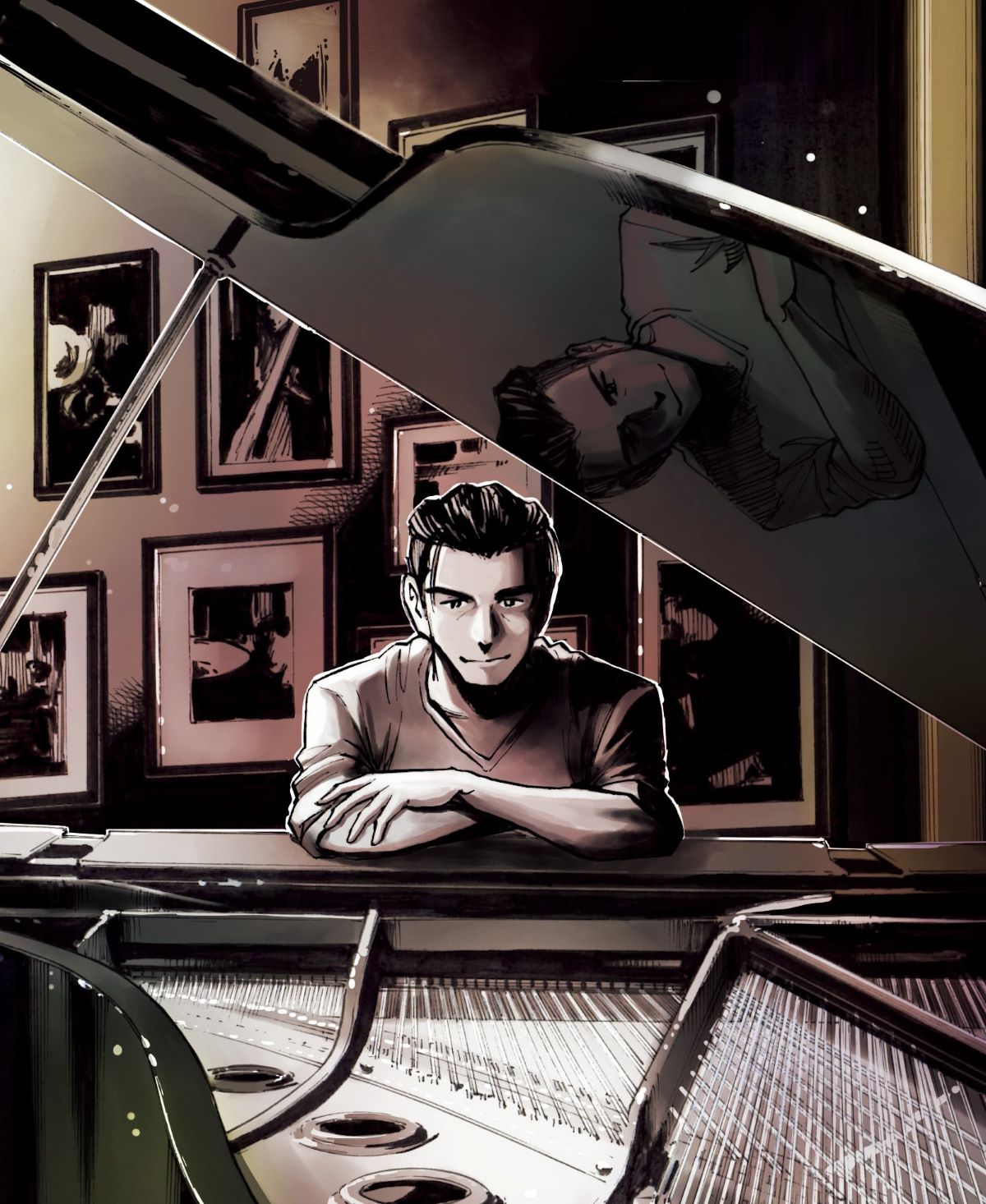 美的読者に注目してほしいキャラクターは、ピアニストの雪祈。繊細な美形の青年といった印象の彼は、ひと言で語りきれないさまざまな魅力に満ちています。物語の前半では、自信家でプライドの高い面が際立っていた雪祈。そんな彼の人間性の深さが表れるのが、第56話からのエピソード。憧れのライブハウス・ソーブルーへの出演を叶えるべく、雪祈はツテをたどり、事業部担当者の平をライブに招待することに成功します。