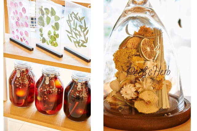 店内はハーブやフルーツがいっぱいに飾られていて、癒しの空間に。