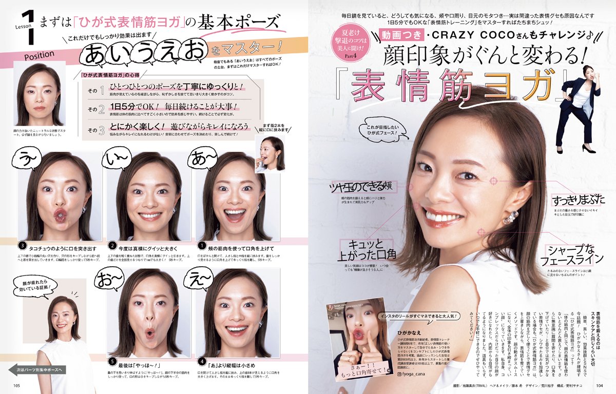 美的コンテンツでも大人気のお笑い芸人・CRAZY COCOさん。ひが式の表情筋ヨガを実践する動画も楽しくわかりやすい!