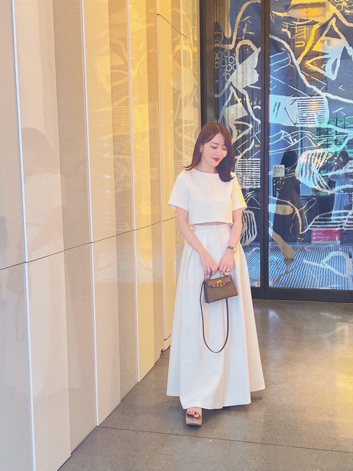 懐かしくて新しい短丈トップス。トレンドを取り入れると、コンサバスタイルにも抜け感が出る気が!?
