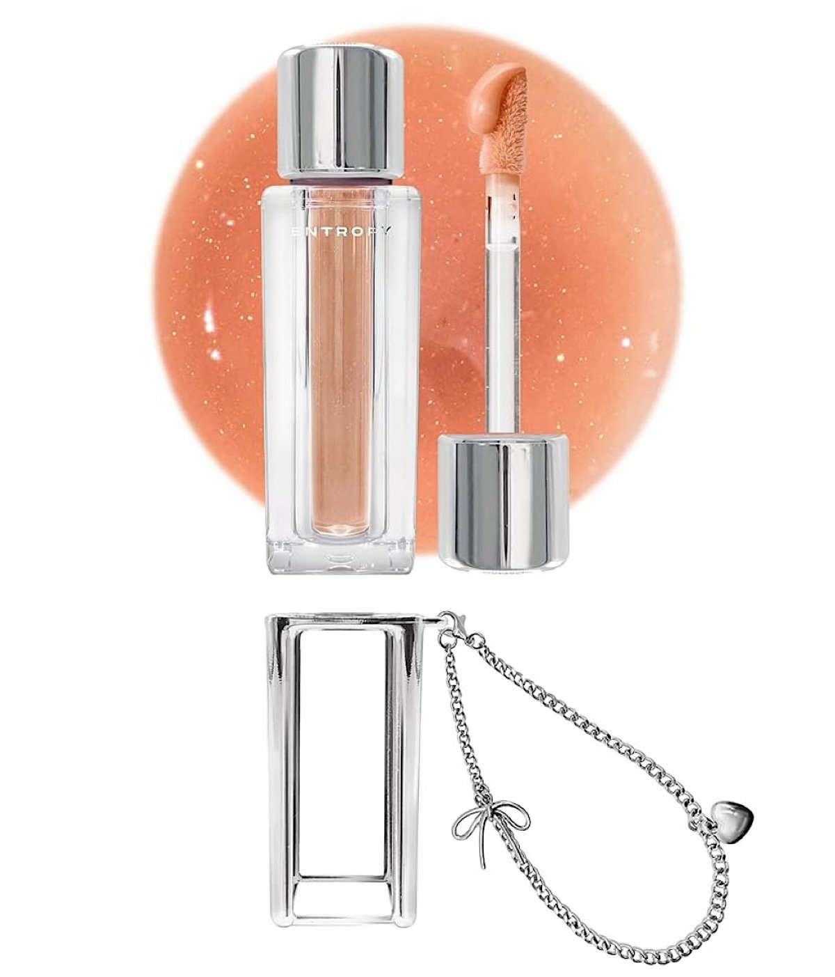 薄いチュール生地からインスピレーションを受けたリップグロス。キラキラとした細かいシルバーとゴールドのラメ入りで、つけると透明感がアップする。T1のスリップは、肌なじみの良いアプリコットヌーディベージュで、誰でもしゃれ顔になれる優れもの。