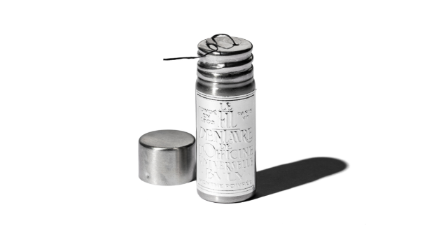 柔らかな繊維を、ペパーミントの香りのついたミツロウでコーティングしたデンタルフロス。洒落たデザインは、歯磨き時間を特別なひとときに格上げしてくれそう。小さく軽量なアルミケースは持ち運びやすいので、外出先にもぜひお供させて。ビュリー・ジャパン オフィシーヌ・ユニヴェルセル・ビュリー フィル・ダンテール(ペパーミント)¥1,760