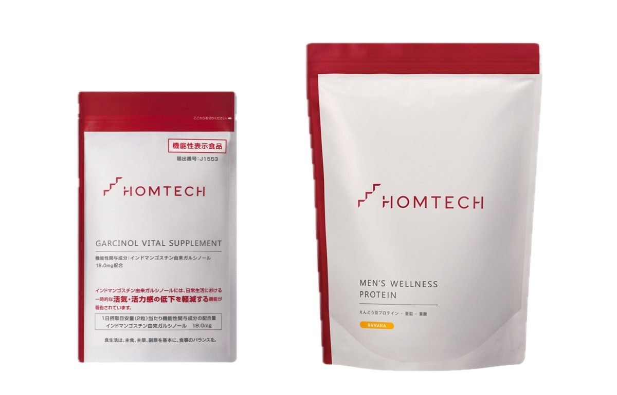 左から/インドマンゴスチン由来ガルシノールが、一時的な活気・活力の低下、疲労感などにアプローチ。男性活力と関わりの深いマカ・クラチャイダム、フェヌグリーク種子由来抽出物も配合し、男性妊活をサポート。オムテック ガルシノールバイタルサプリメント 60粒(約1か月分) ¥3,996 バナナ味のフルーツフレーバーで、すっきり飲みやすいプロテインパウダー。亜鉛や葉酸、5種のビタミンをはじめ、男性コンディションに着目した成分を17種類配合。オムテック メンズウェルネスプロテイン(バナナ味) 750g(約1か月分) ¥5,994