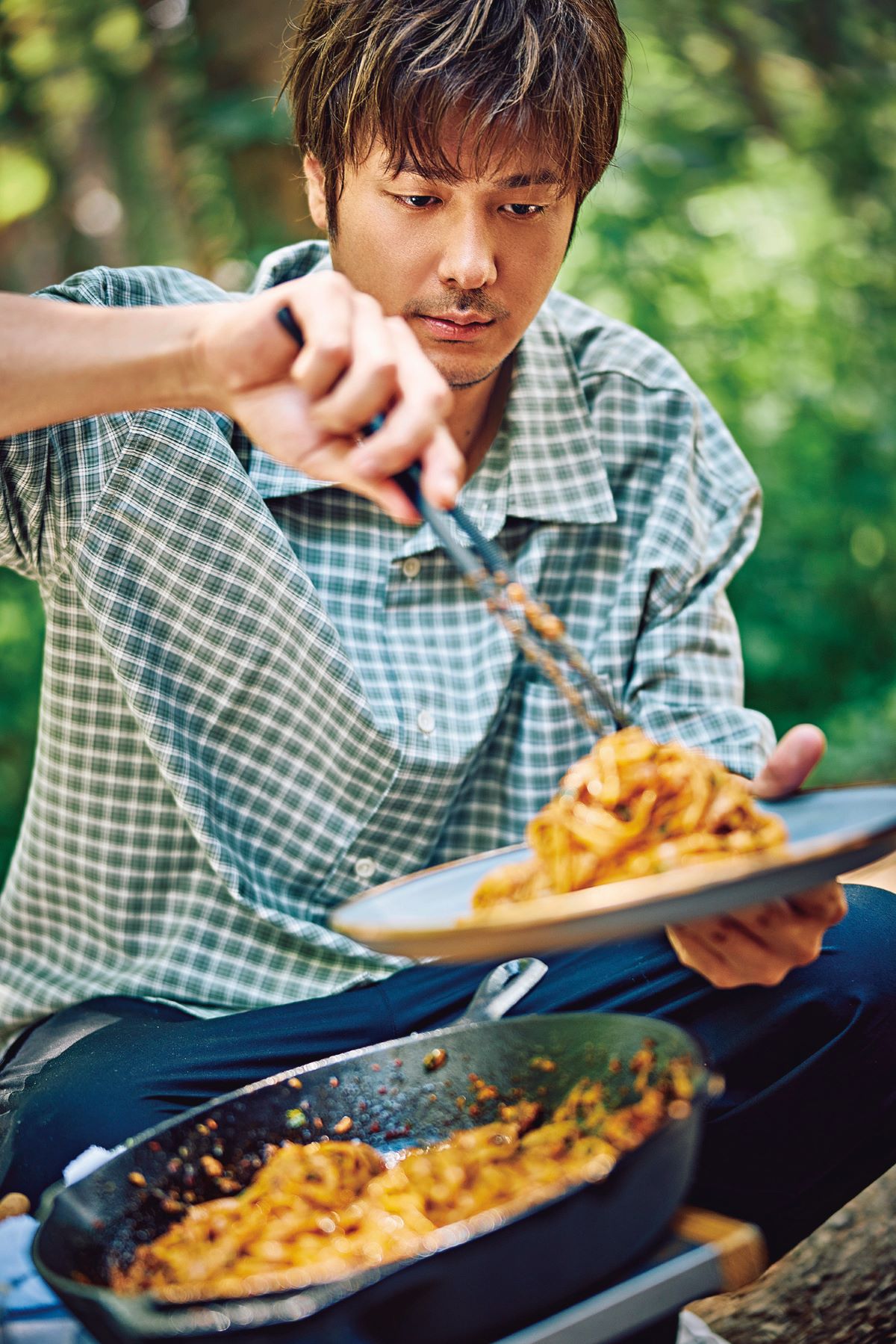 「一日中料理していてもまったく苦にならないんです。食材も万全に用意していたのでスムーズに進んですごく楽しい撮影でした!いつもアウトドアで料理するときに使う自分のギアを使って撮影したので、一式全部運ぶのは大変でしたね。虫が苦手なので虫よけはもちろん、日焼け止めも塗って紫外線もしっかり対策しましたよ」(以下同/速水もこみちさん)