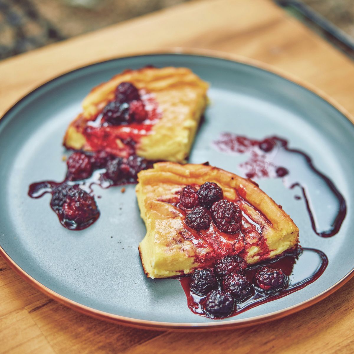 しっとり&プルンとした食感がクセになるバスク風チーズケーキ。ベリー系や柑橘系との相性が抜群で、ブラックベリーソースを添えればより本格的な味わいに。
