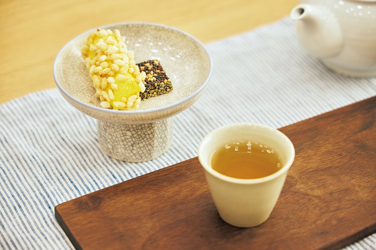 施術後はデトックス効果のあるカボチャ茶と韓国の伝統菓子で一息。最後まで至れり尽くせりなひとときに。