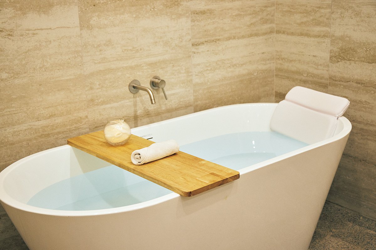 2日目の締めくくりに訪れたのは、心も体もリフレッシュできる贅沢な個室アカすり。女性専用、かつ個室なので安心して施術を受けられます。丸山さんも「体がつるつるになってびっくり。体はもちろん頭も洗ってくれるので全身洗濯されているような気持ち! 旅の疲れも吹き飛んで今日はよく眠れそう♡」と大満喫。
