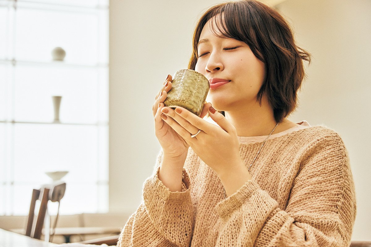 ローゲージニット¥3,960(アンティローザ〈VANNIE U〉) パンツ¥4,290(アンティローザ〈Libra Cue〉) ネックレス¥6,380(HANA KOREA〈NFF〉) その他/スタイリスト私物