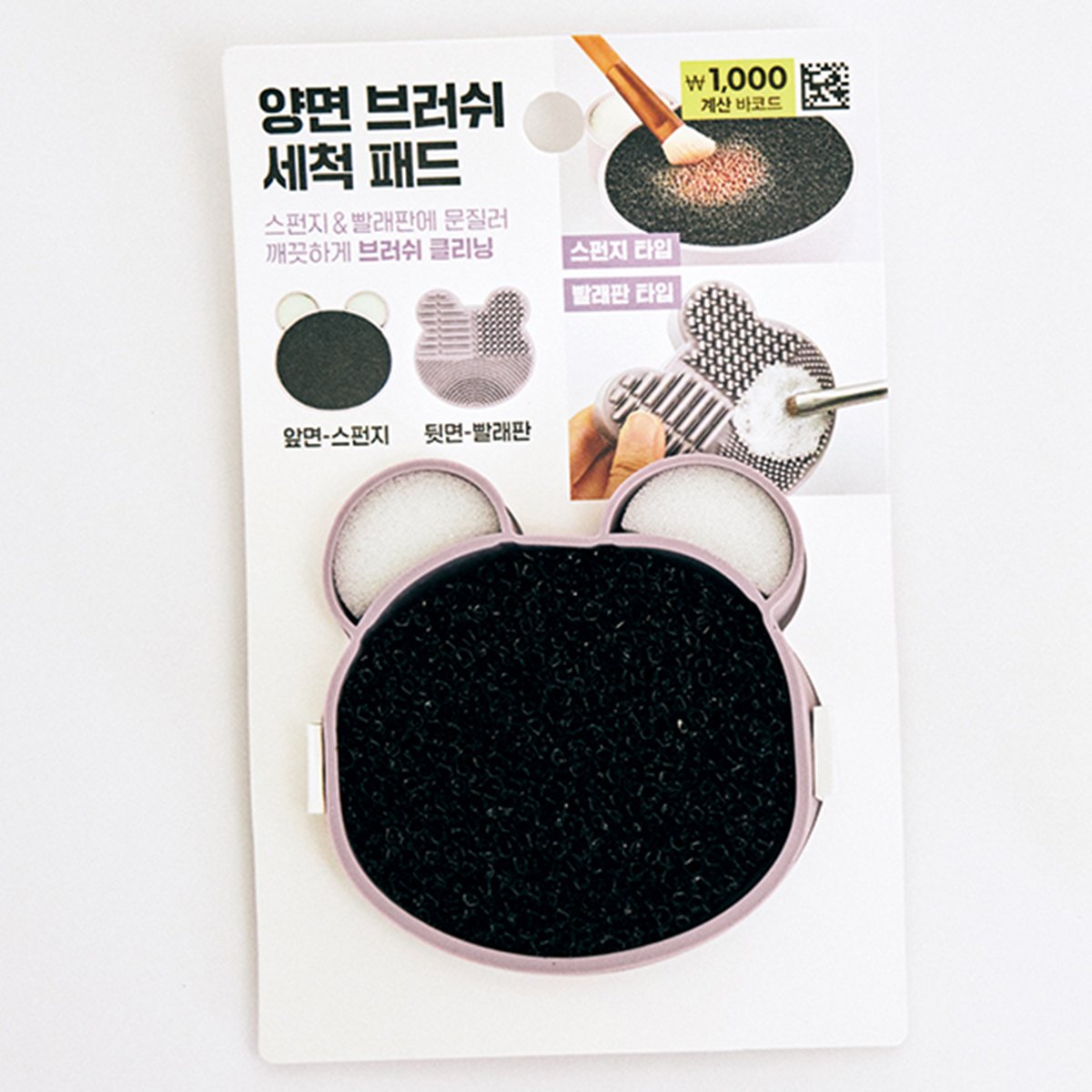 表はアイシャドウなどの粉をはらうスポンジ、裏面は洗濯板のような突起のついたブラシクリーナー。