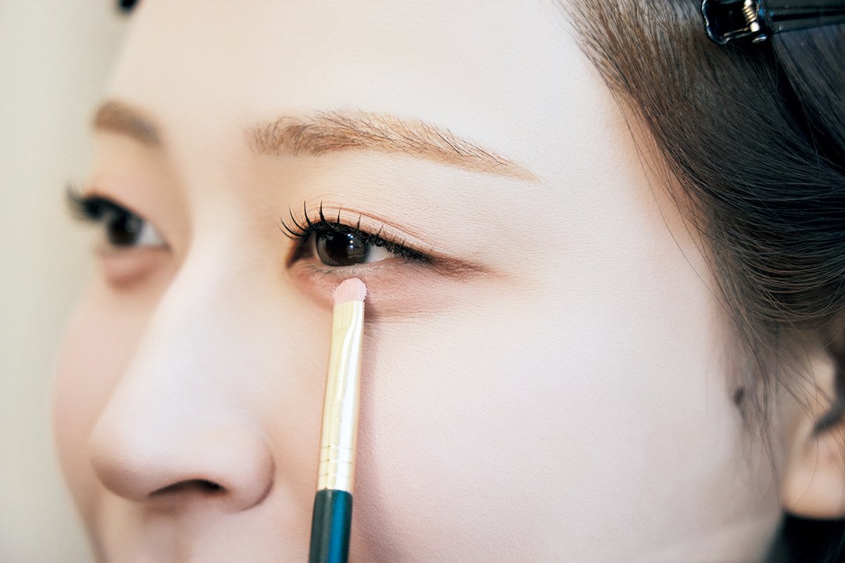 上まぶたよりも涙袋の方にポイントを置いたメイクに。