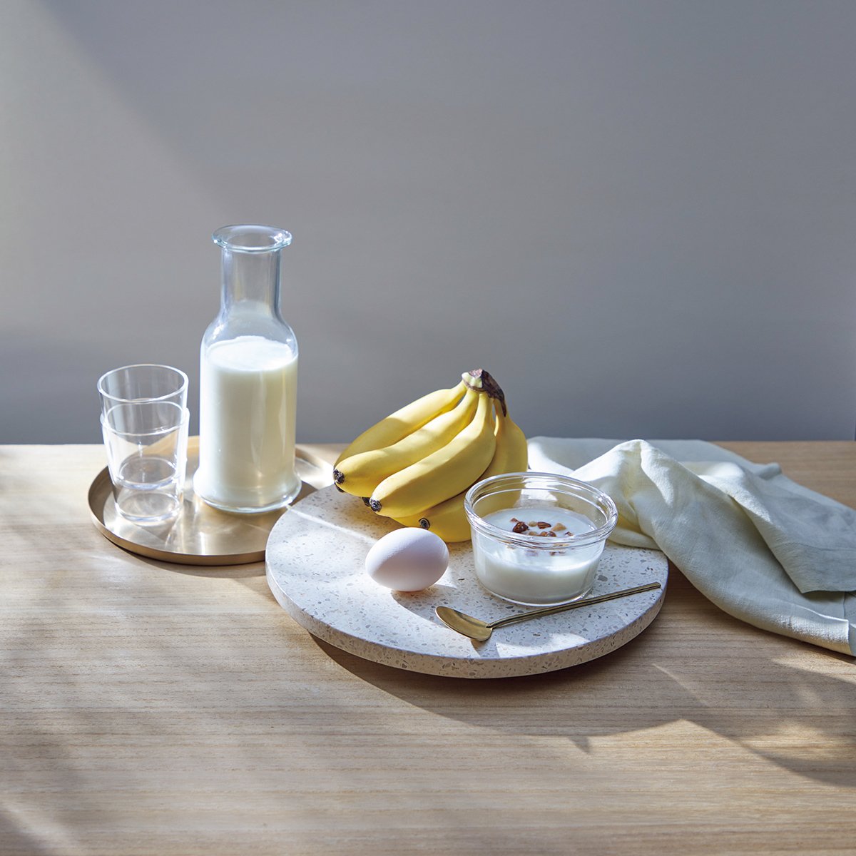 規則正しい朝のルーティンで体内時計が整うと睡眠と覚醒のリズムもスムースに。「朝は日光を浴びてセロトニンを生成するのが快眠のために良いと知られていますが、朝食でトリプトファンをとるのも実は大切。洋食なら牛乳や卵、バナナ、ヨーグルト、チーズなど、和食ならみそ汁、納豆、豆腐などを組み合わせるとトリプトファンを効率的に摂取できます」(八木先生)