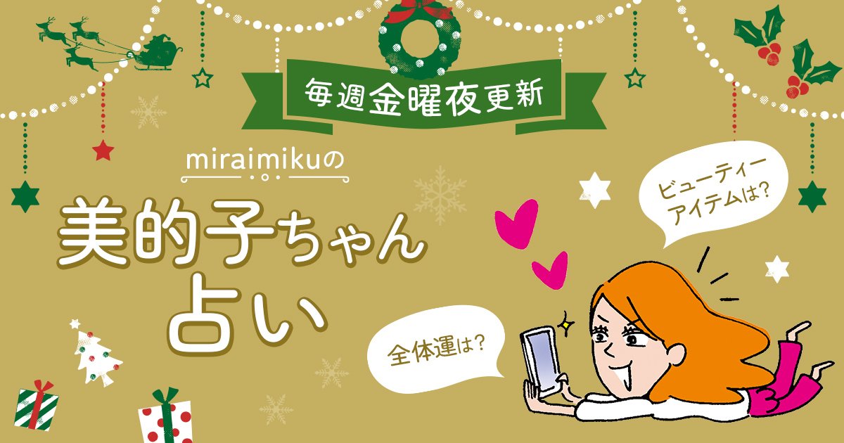 金曜夜更新!HAPPYへ導く「美的子ちゃん占い」。1週間の星占いと、タロットカードによるビューティメッセージを12星座別にお届けします。