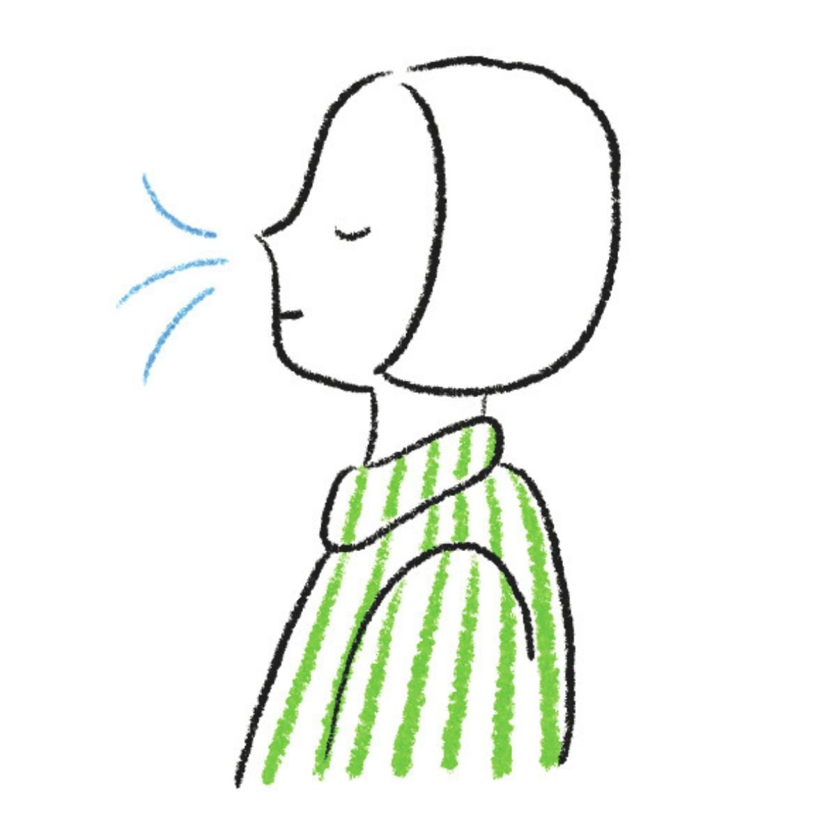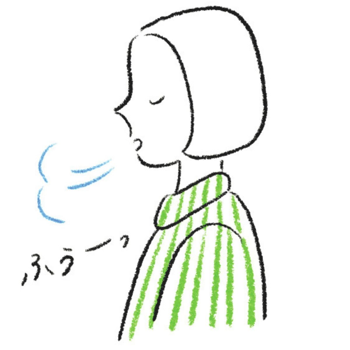 8拍カウントしながら口から細く息を吐き切る。一連の呼吸を4サイクル繰り返して終了。