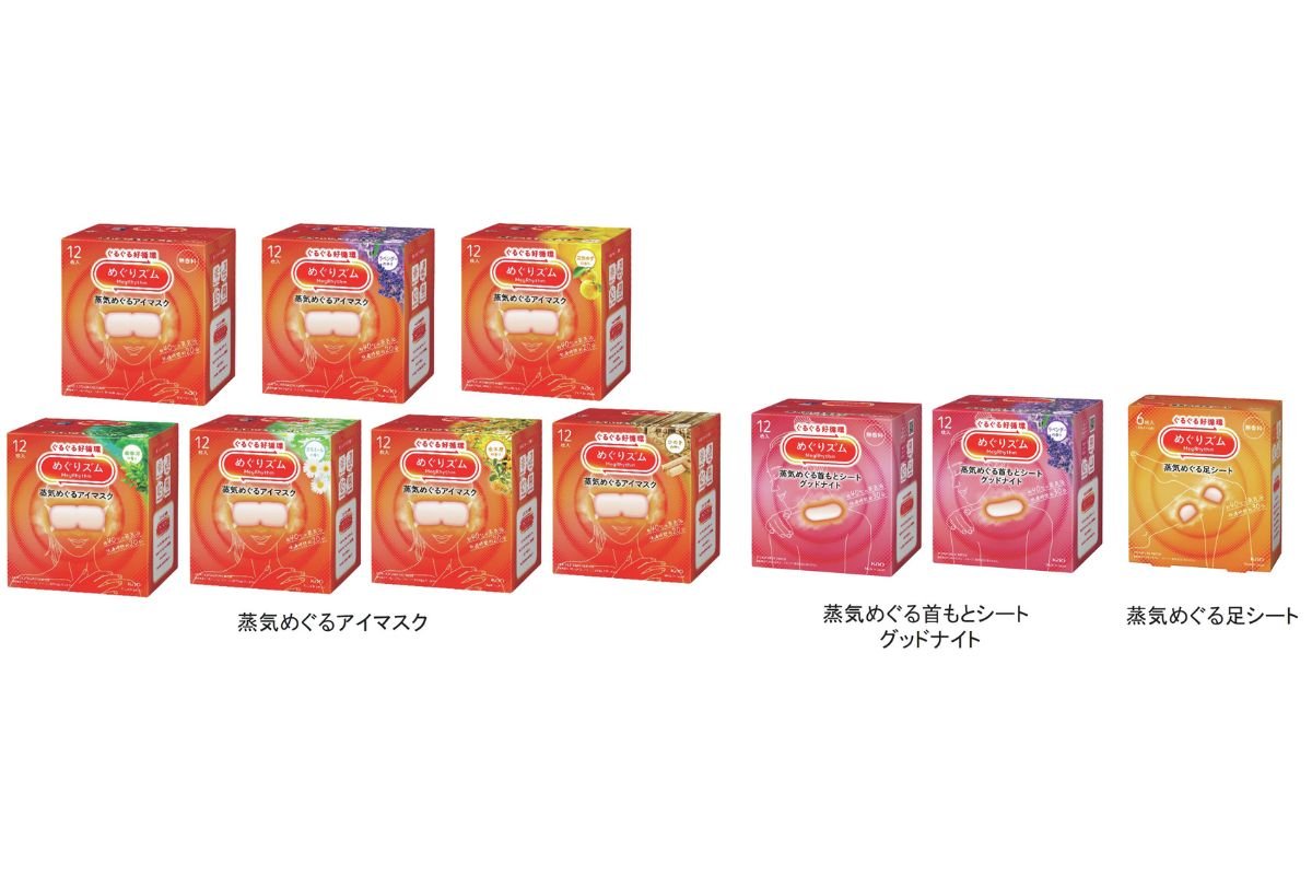 花王めぐりズム 蒸気めぐるアイマスク 全7種 12枚入 ¥1,410(編集部調べ)、5枚入 ¥620(編集部調べ)※医療機器ではありません。
