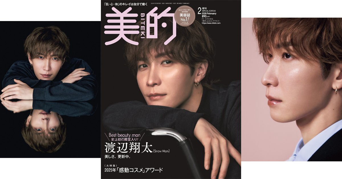 渡辺翔太さん(Snow Man)が3度目の「美的ベストビューティマン」で初の殿堂入り! 『美的』2月号表紙に登場