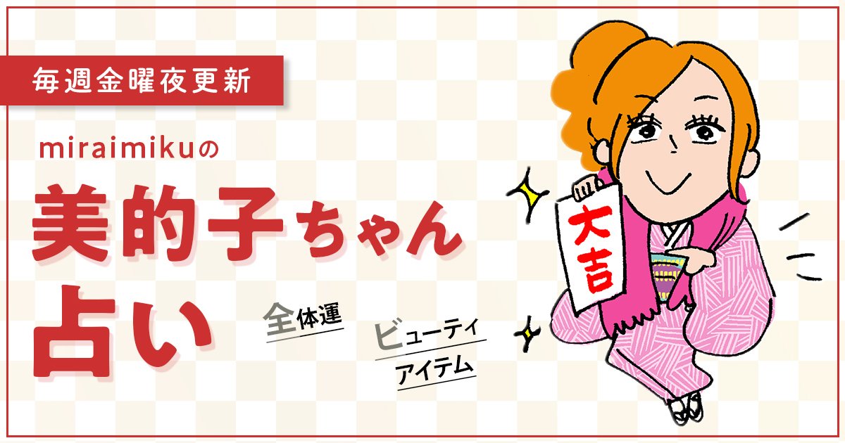 金曜夜更新!HAPPYへ導く「美的子ちゃん占い」。1週間の星占いと、タロットカードによるビューティメッセージを12星座別にお届けします。