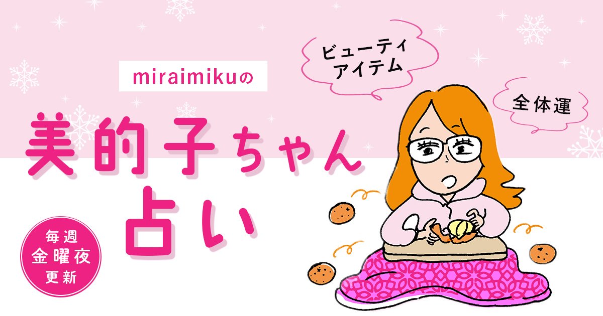 金曜夜更新!HAPPYへ導く「美的子ちゃん占い」。1週間の星占いと、タロットカードによるビューティメッセージを12星座別にお届けします。