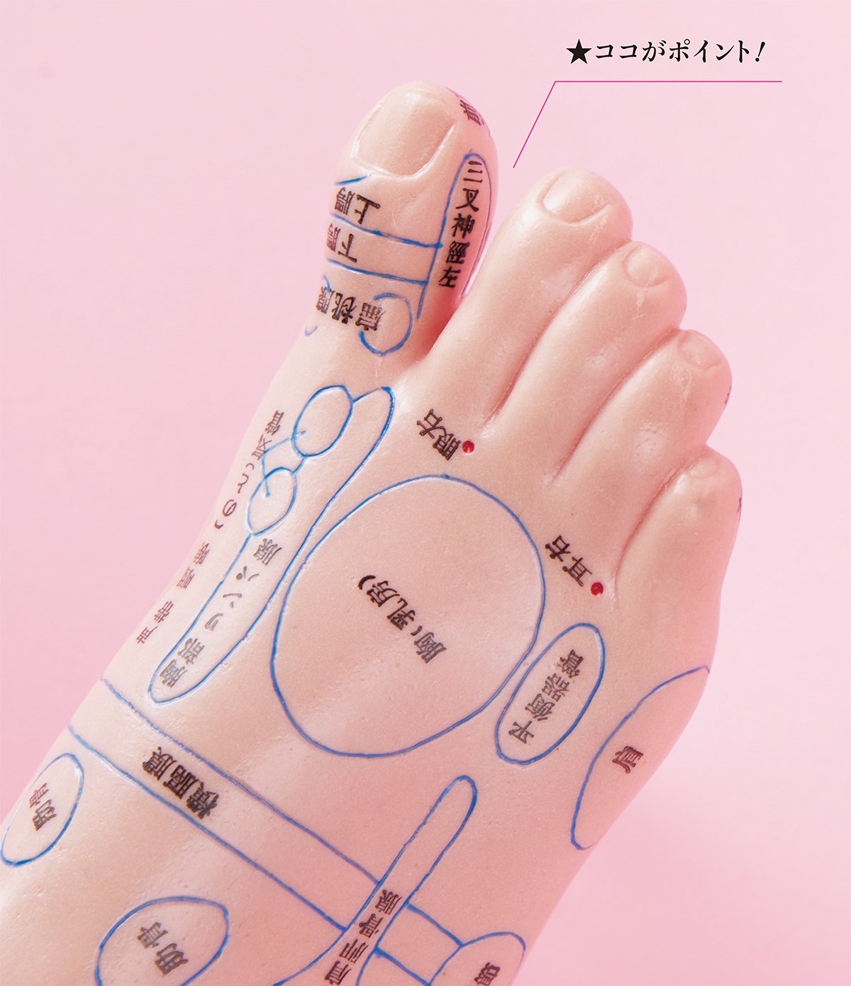 下準備として、足の指先全体のもみほぐしを加えるのもおすすめ。ドライアイの軽減にも効果的な反射区といわれています。