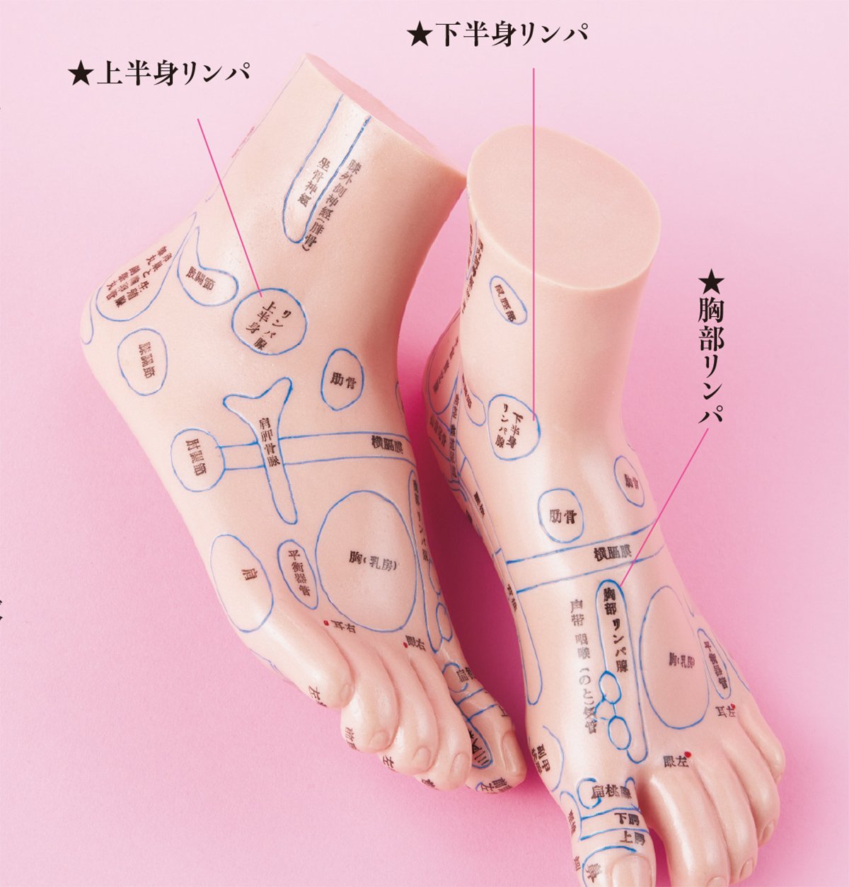 アプローチするのは、「胸部リンパ」「上半身リンパ」「下半身リンパ」の3つの反射区。顔や足のむくみのほか、肩こりもラクに。