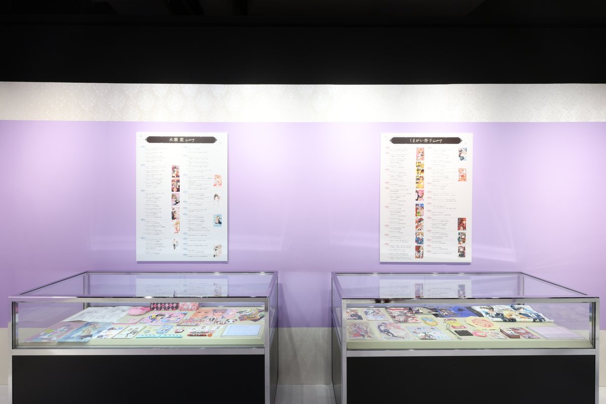 会場の壁をよく見ると、二人が描いた直筆イラストやサインがあちこちに。隅々まで楽しめる仕掛けがいっぱい! さらに、両氏の仕事デスクを再現したコーナーも。実際に使っている画材やぬいぐるみ、お菓子なども置かれていて、親近感が湧きます。「ここから美しい作品が生まれるんだ」と思うと、じんわり感動♡
