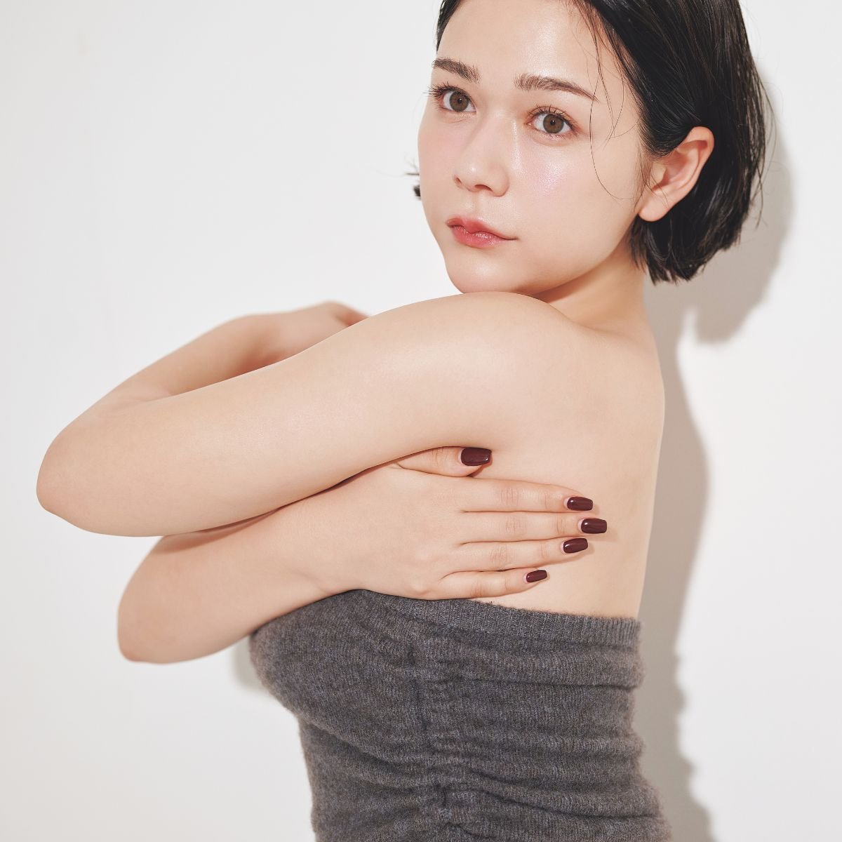 「バスト用美容液は2日に1回程。おっぱい全体に塗り、わき下からお肉を集めて寄せて上げるようになじませて保湿を。実は乳首にも角質がたまるんです! 黒ずみが気になったら低刺激のクレンジング料で優しくオフ。おかげで私、乳首に自信がありますよ!」