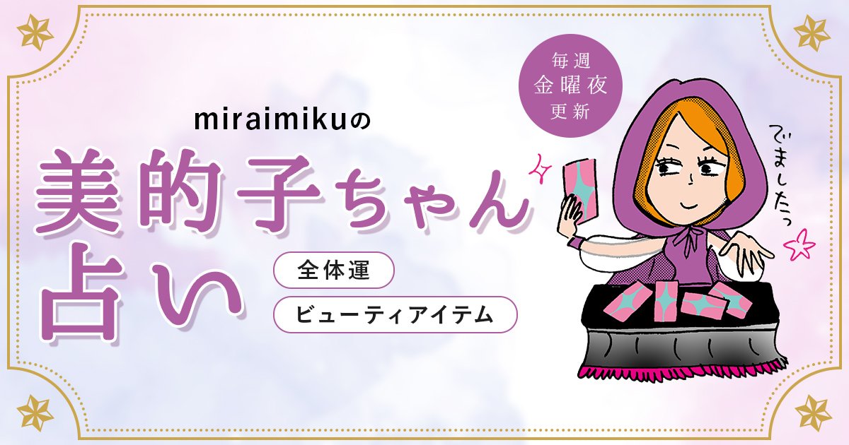 金曜夜更新!HAPPYへ導く「美的子ちゃん占い」。1週間の星占いと、タロットカードによるビューティメッセージを12星座別にお届けします。