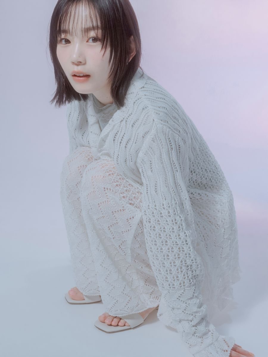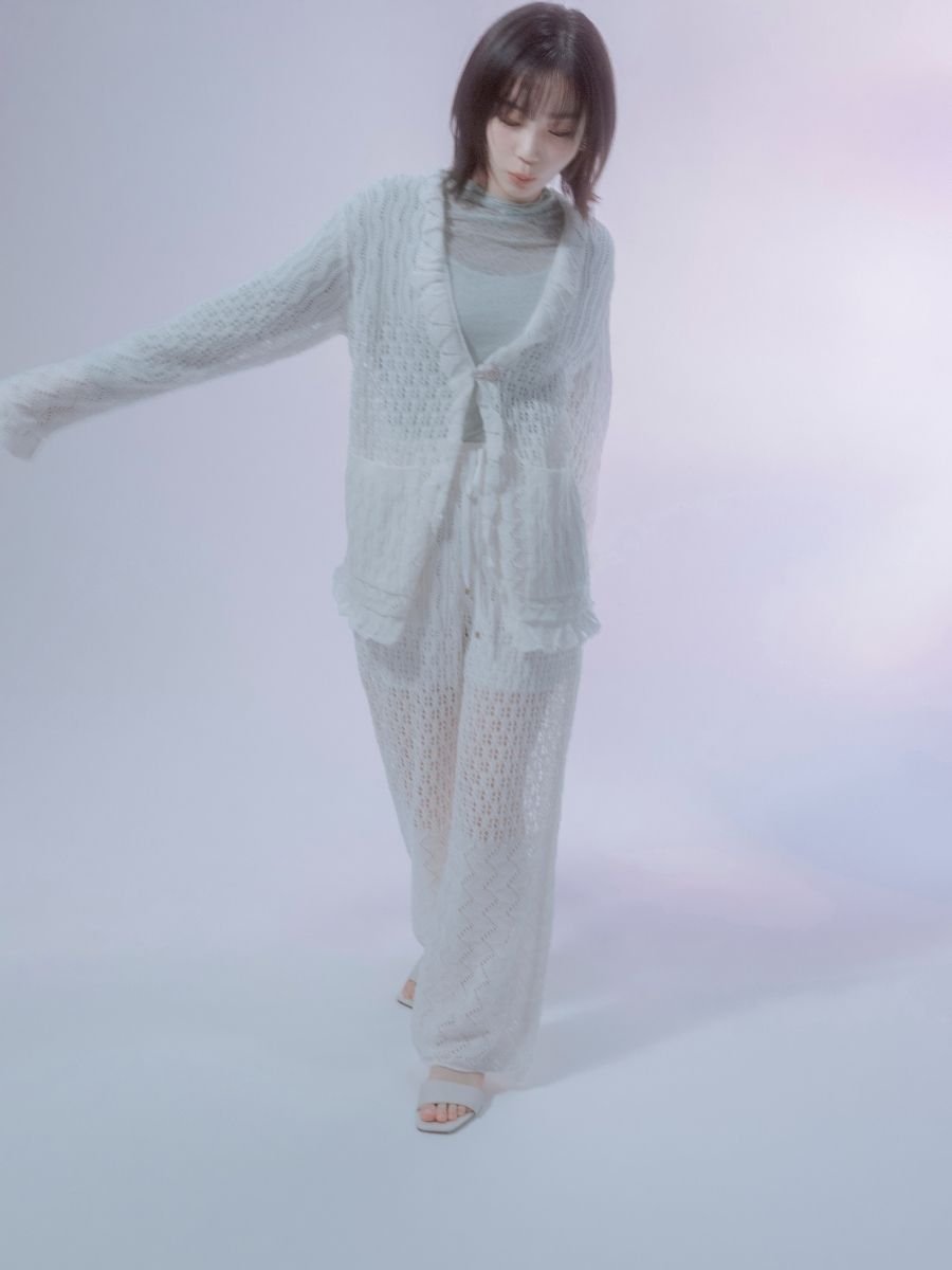 カーディガン¥57,200、トップス¥38,500、パンツ¥53,900(バウ インク〈ルール ロジェット〉 問い合わせ先:03-6427-1590)