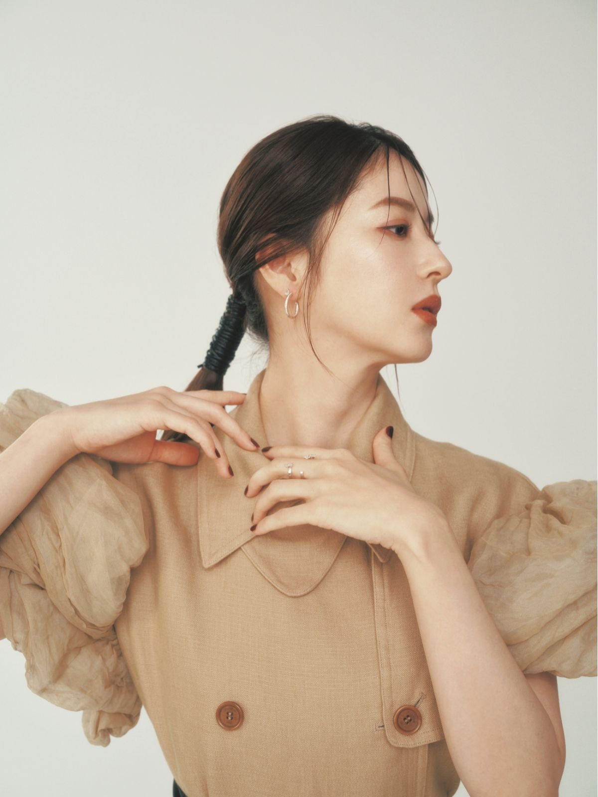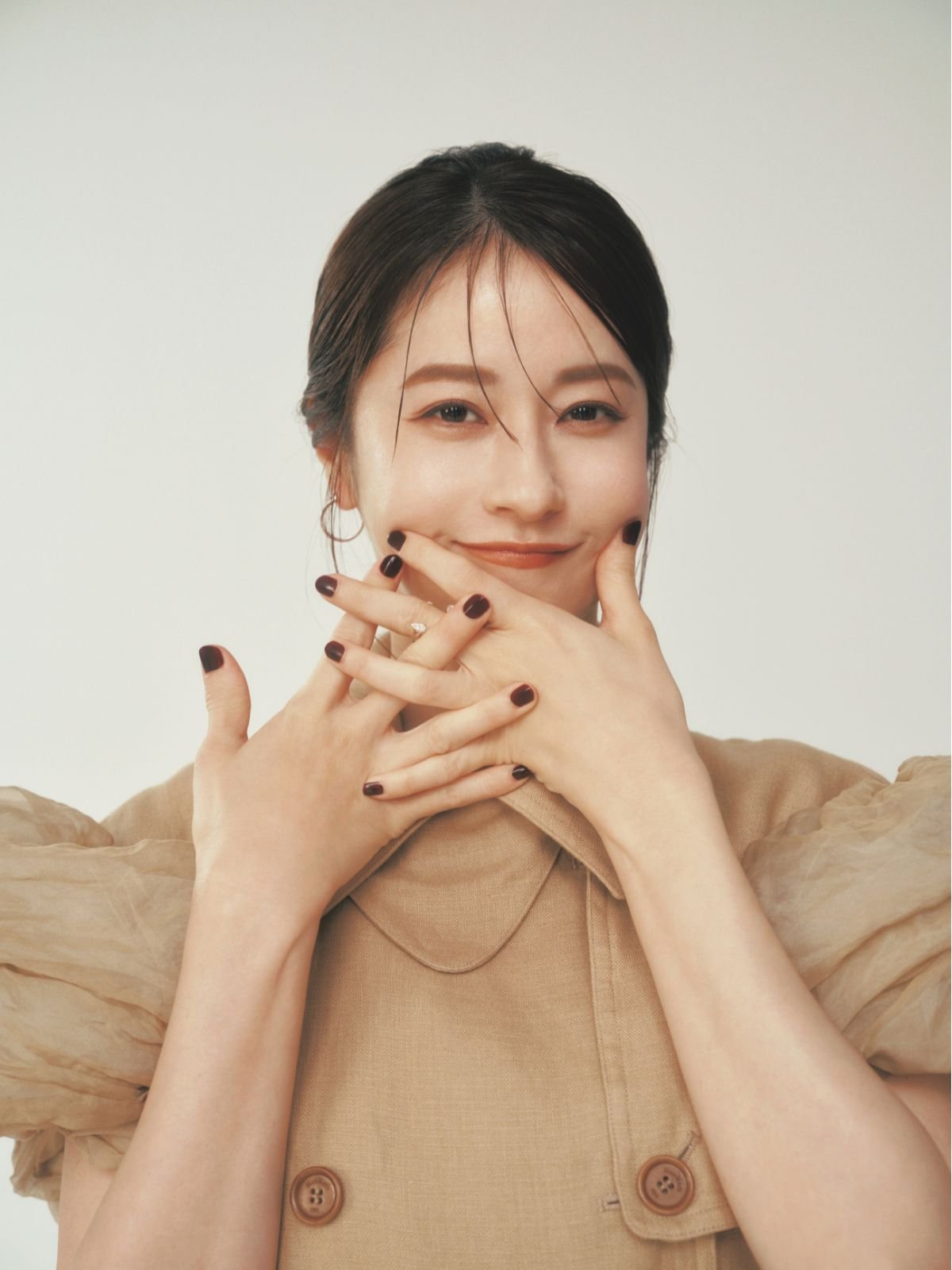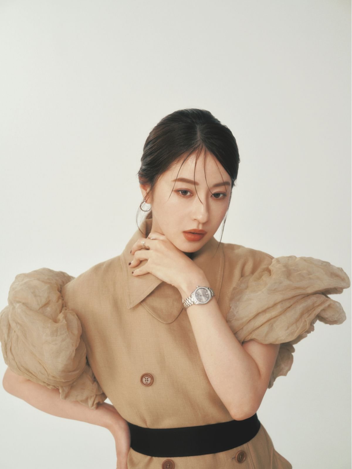 「透明感のあるメイクも素敵ですが、肌をしっかりケアしないと下地やファンデーションも生かせないと教えていただいてからは、保湿を丁寧に行うようになりました。そうして、その時々の自分に合う透明感を出せたらと思いますが、シワをなくしたいとは思わないんです。笑いジワがなければ“福”な感じがなくなる気がするし、笑いジワのある表情は10代、20代の自分では出せなかったものでもあるから、服や時計が自分になじんでいくように、シワも育てていけたらなと思います」