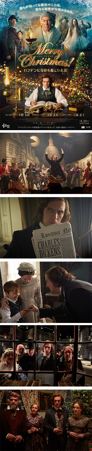 【 STORY 】 1843 年 10 月、スランプに陥っていた英文学作家の チャールズ・ディケンズ。家族のためにもベストセラーを生み出したいと思っていた彼は、クリスマスを題材にした小説を書くことを思い付く。出版社との関係も悪化する中、クリスマスシーズンに向けて残された執筆期間は わずか 6 週間。ディケンズは執筆に没頭しているうちに小説の世界に入り込み、やがて現実と幻想の境目が曖昧になってしまう。「 クリスマス・キャロル 」の登場人物であるスクルージと 3 人の幽霊との不思議な出会いを経て、心の奥にしまっていた幼少期の記憶、そして 父親との確執といった、自らの問題とも対峠していく――。( プレス資料より。一部省略 )