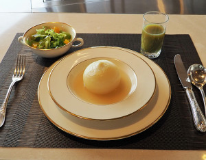 朝食は“デトックス”をテーマに旬の野菜・果物を使ったコース仕立てのメニュー。玉ねぎを丸ごと一個使用した玉ねぎスープ、バンズがアボカドのアボカドバーガーなどが特徴です。