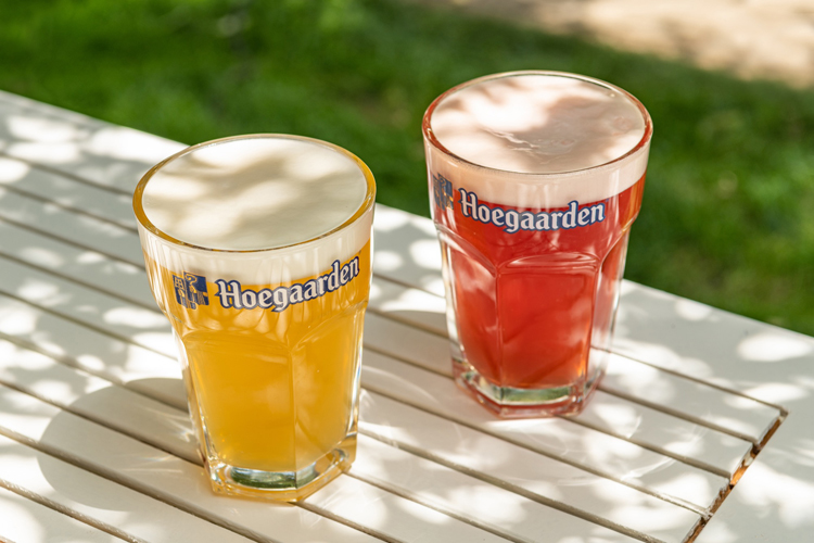 写真右/「ヒューガルデン ホワイト」をベースにラズベリーの果汁を加えた、フルーティな香りと爽やかな酸味が特徴の「ヒューガルデン ロゼ」