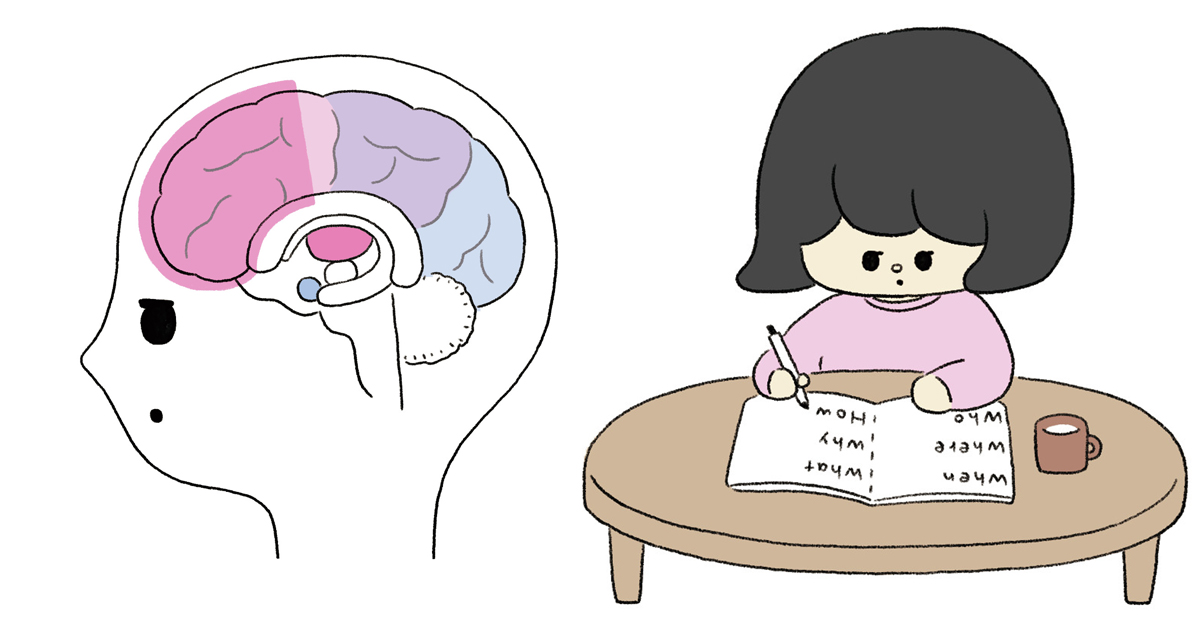 人間の脳は動物と違い、より良く生きるために考える「大脳新皮質」が発達している。特に、その前方にある前頭葉の大部分を占める「前頭前野」は、記憶や感情の制御、行動の抑制などをつかさどる“脳の司令塔”。扁桃体が作り出す不安感情を抑制する働きも。