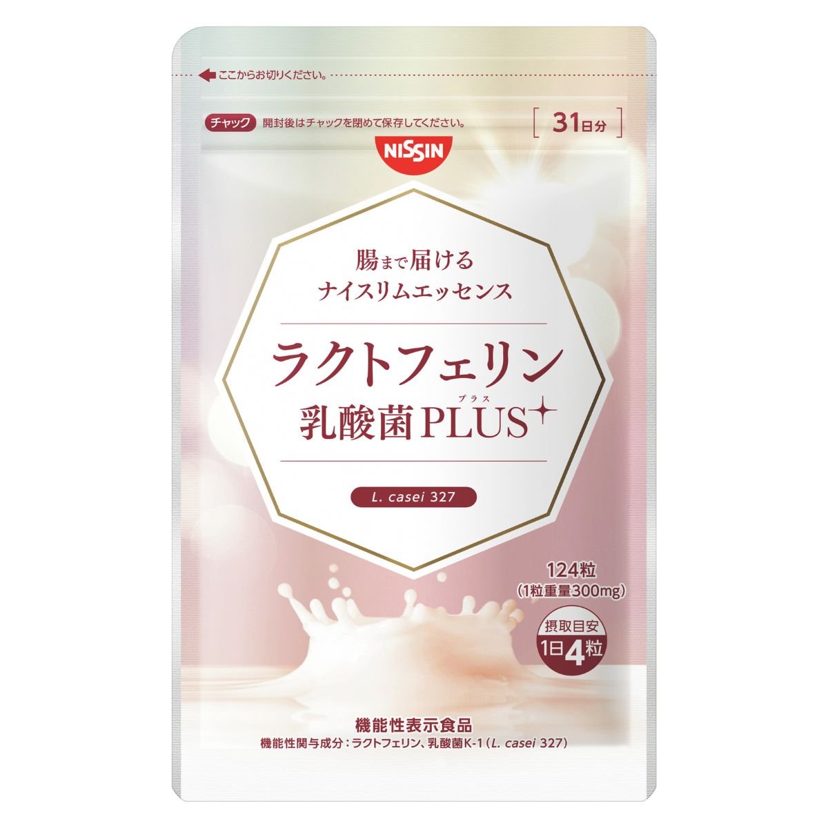 日清食品 腸まで届けるナイスリムエッセンス ラクトフェリン 乳酸菌PLUS [機能性表示食品] 124粒(約31日分) ¥7,419