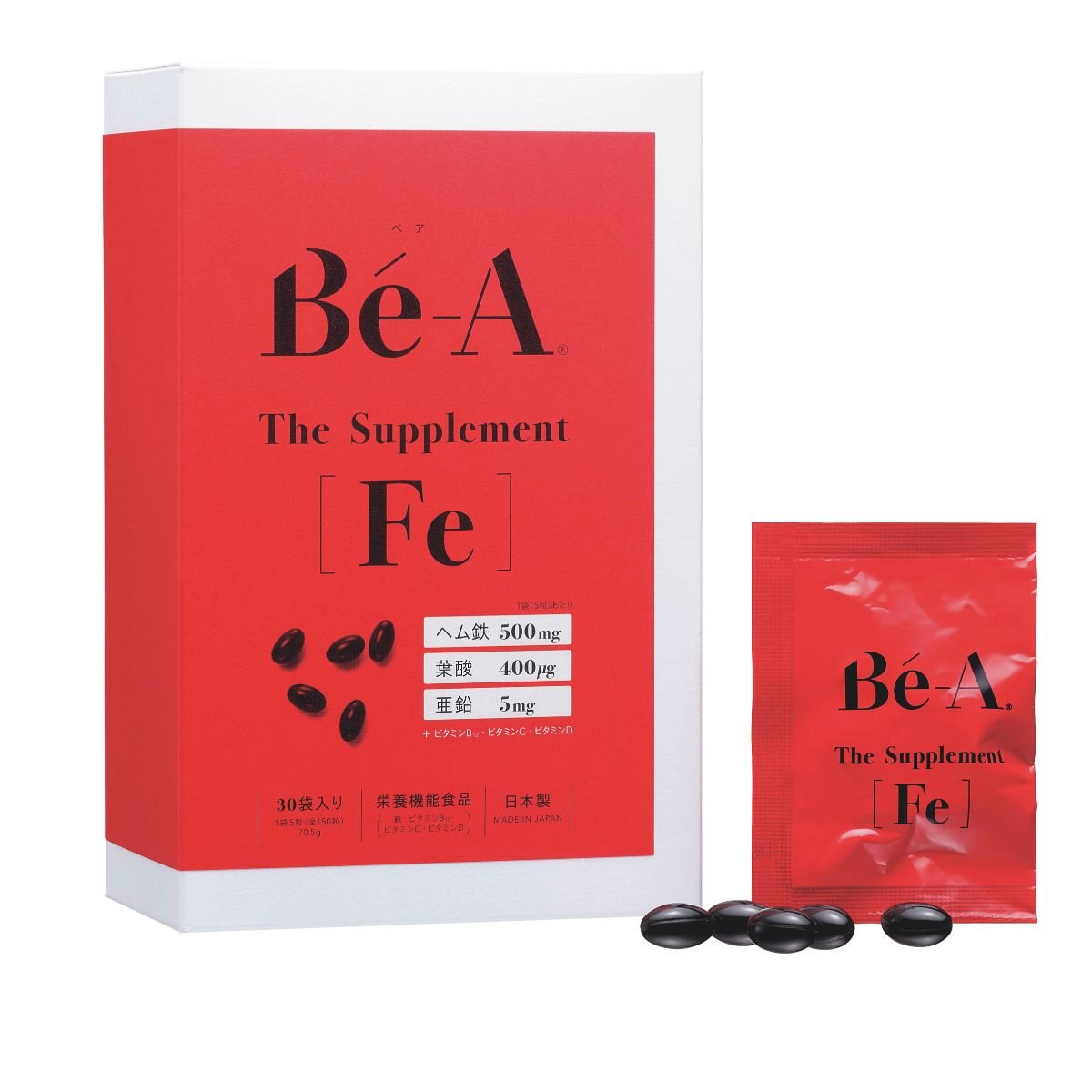 月経時に鉄の必要量が通常より格段に増える女性向けに、医師監修の下、誕生した個包装のサプリメント。ヘム鉄、亜鉛、葉酸、赤血球形成を助けるビタミンB12とC・Dも配合。