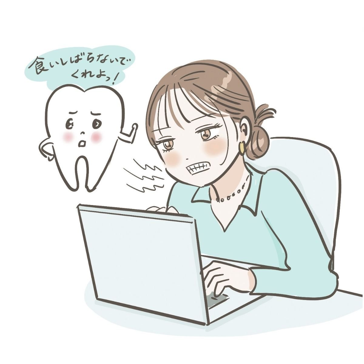 パソコン作業で集中していたり、精神的なストレスを感じると奥歯を強くかみ締めてしまうことがあります。これをブラキシズムといって、無意識下なことがほとんど。歯磨きの度に違和感や歯肉痛があるなら食いしばりが考えられます。