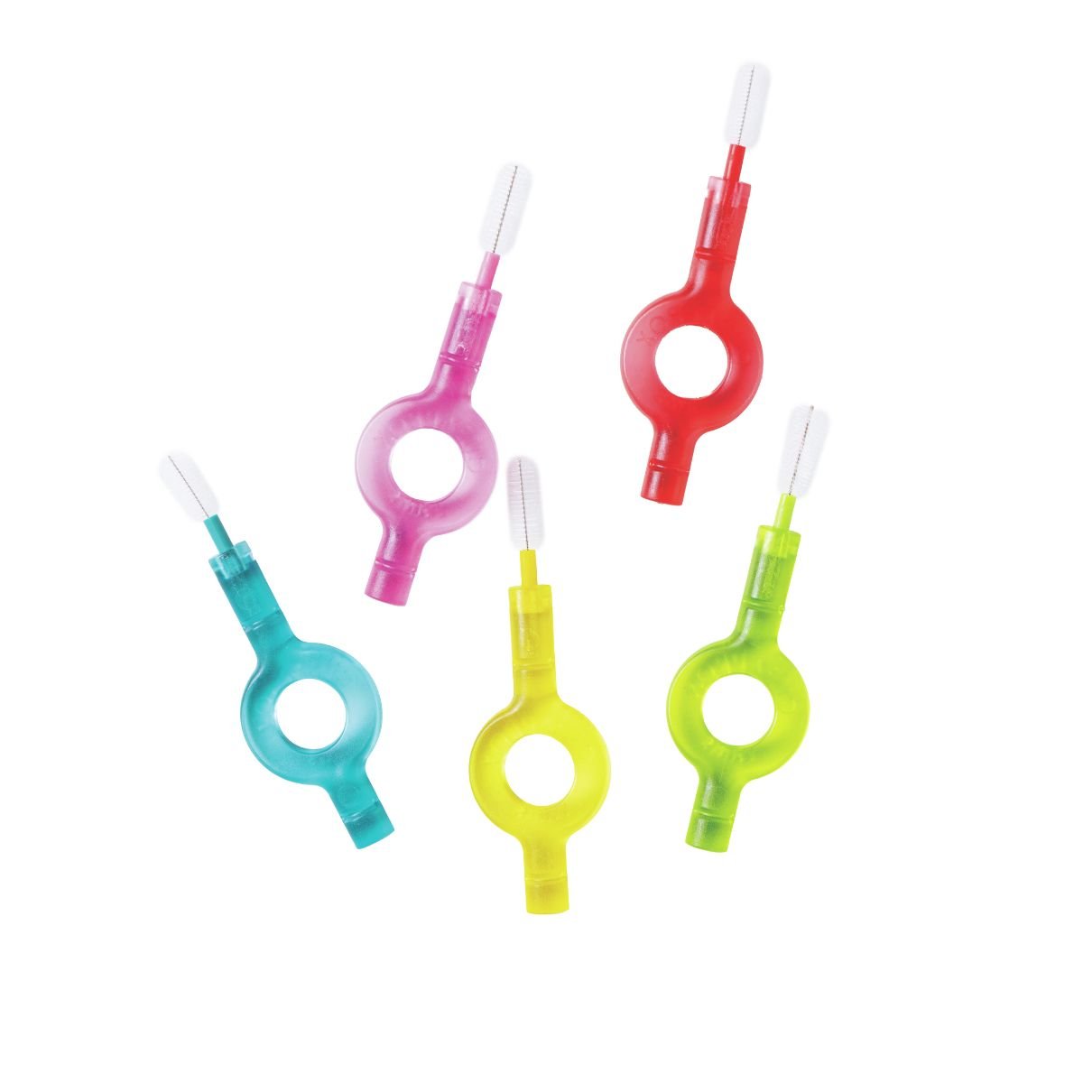 人間工学的にデザインされたコンパクトなホルダーは使い勝手も良好。デンタルフロスでも届かない部分を、毛先の長い歯間ブラシが溝を限りなく埋めて歯垢を除去。