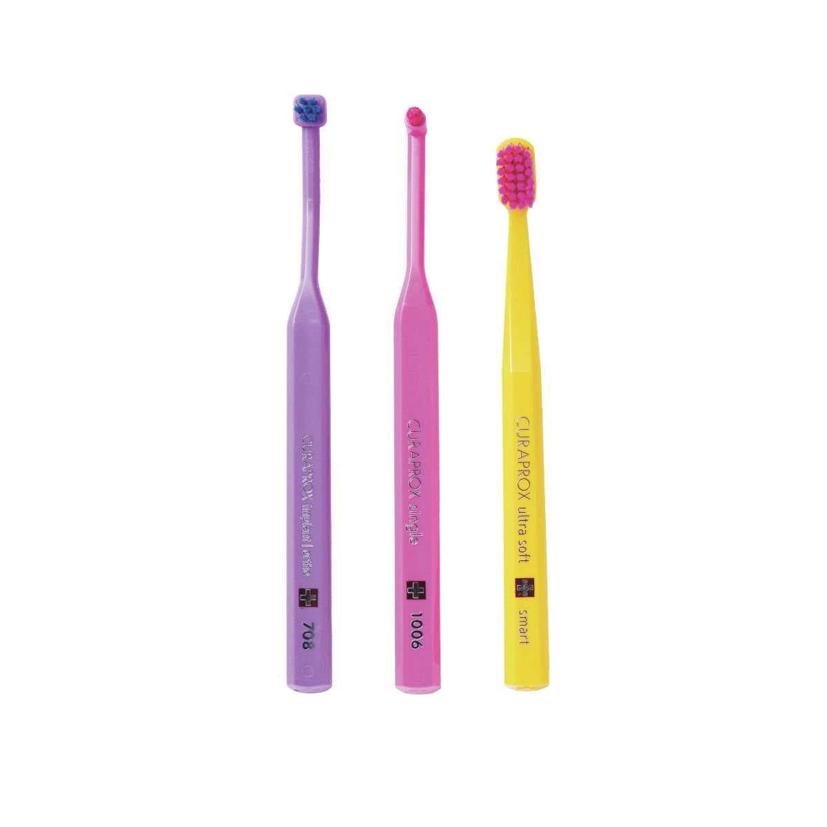 右から/スリムデザインのヘッドで口のすみずみに届く「CS smart」、歯列矯正中の人にもおすすめの「CS 1006」と「CS708」。8角形のハンドがブラッシング角度を効果的にサポート。