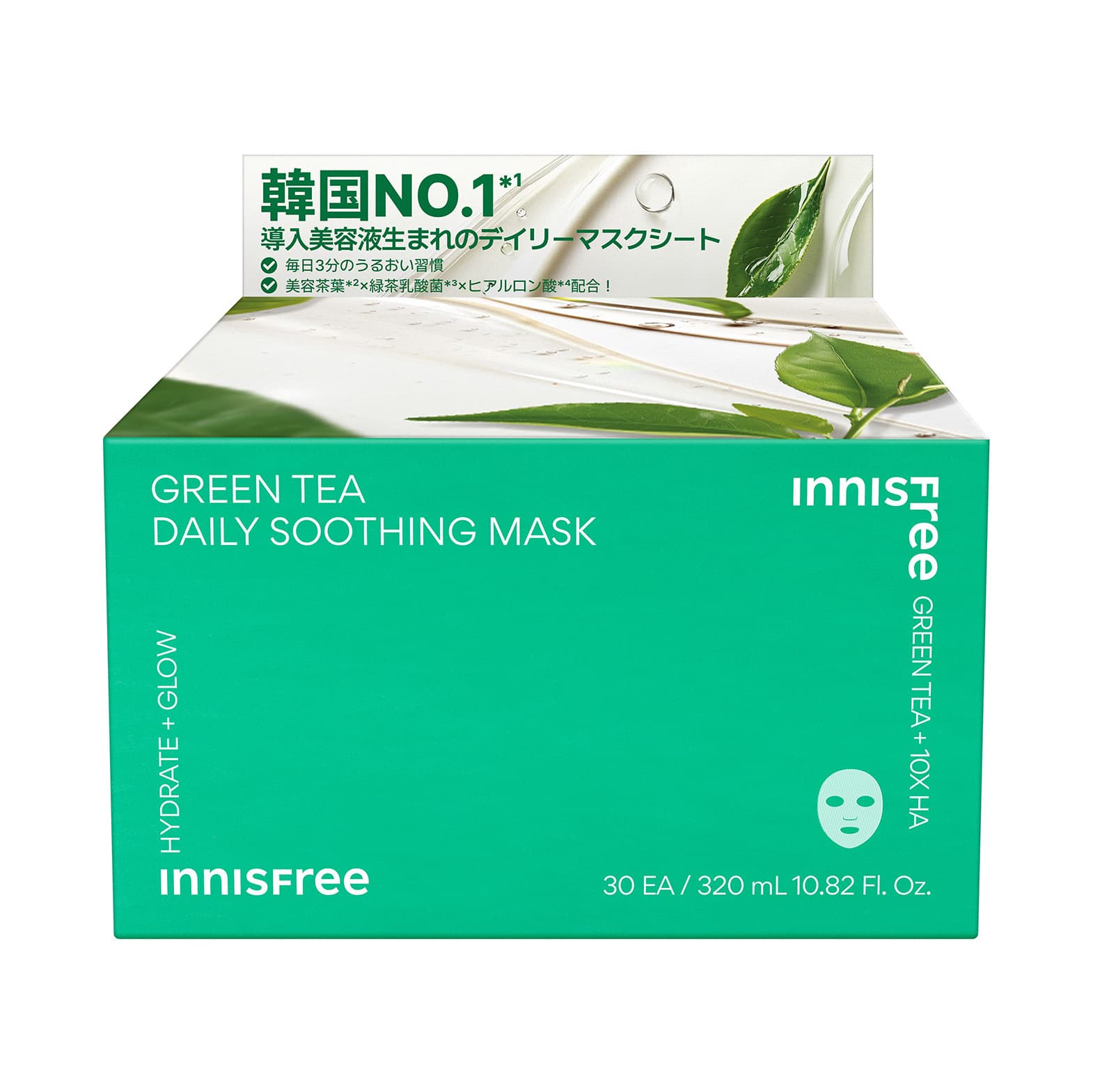 美容茶葉と5種類のヒアルロン酸が、乾燥したお肌に素早く潤いをチャージ! 角質層のすみずみまでみずみずしさで満たして、メイクのりの良いコンディションへ。忙しい朝も3分で完了する手軽さが嬉しい♡ INNISFREE グリーンティーシード ヒアルロン デイリー マスク 30枚入り ¥2,420