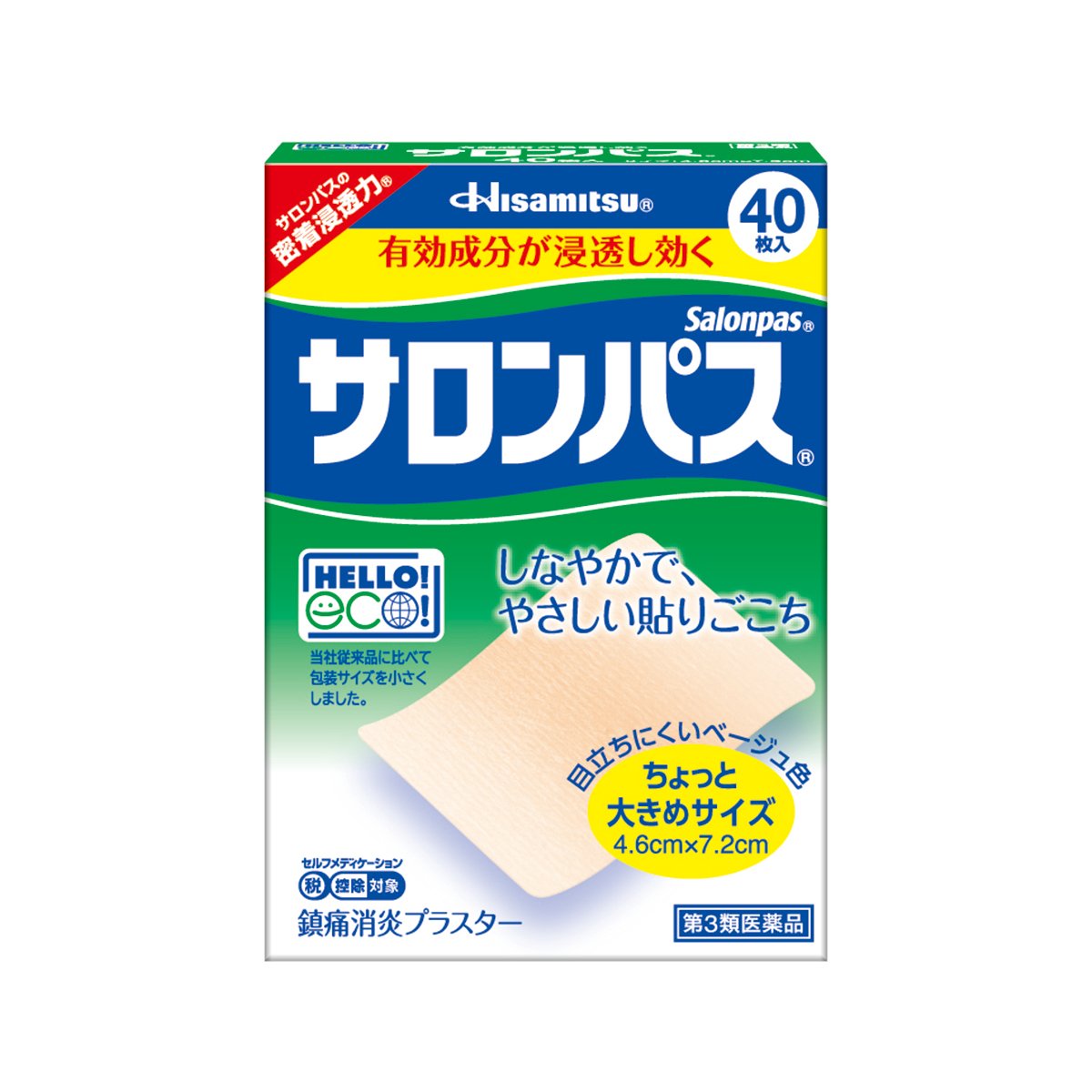 鎮痛消炎成分サリチル酸メチル10%配合。久光製薬 サロンパス 第3 類医薬品 40枚入 ¥655